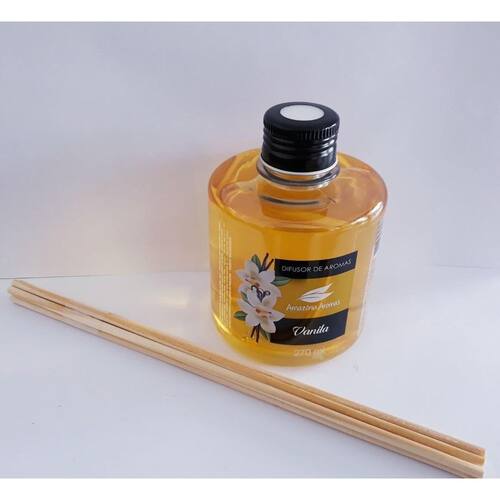 aromatizador de ambientes vanilia 270ml - amazônia aromas a amazônia aromas linha especial de aromatizantes e difusores de ambiente, traz muito mais conforto e aconchego para os ambientes internos. O difusor de ambientes vanilia pode ser utilizado em diferentes lugares, seja na sala, quarto, banheiro, ou até mesmo em escritórios e agências, pois um ambiente perfumado reflete cuidado e capricho. Embalagem: 270ml + 6 varetas composição: veículo, solvente, corante e fragrância.