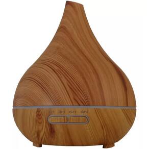 Difusor elétrico aromatizador com led 400ml marrom claro lindo aromatizador, umidificador de ar e luminária noturna com 7 cores de luz de led no mesmo aparelho. Possui capacidade para 400ml de água e é composto de plástico imitando madeira. Ele é elétrico, funciona ligado na tomada 110v ou 220v bivolt . Não necessita de filtro de reposição. Possui temporizador de 1, 3 e 6 horas com desligamento automático. A luz pode ser desligada, deixando apenas o aromatizador. Pode fixar a cor da luz ou deixar trocando automaticamente. Pode ser adicionado óleo essencial na água. Principais características -próprio para óleos essenciais, proporcionando os efeitos da aromaterapia -difusão ultrassônica a frio, mantém as propriedades do óleo essencial -umidifica o ambiente, auxilia em dias com baixa umidade do ar -lindo objeto decorativo, com 7 cores de luz em led -pode ser utilizado a noite durante o sono, quando a água acabar ele desliga automaticamente informações técnicas -cor: marrom claro -alimentação: fonte bivolt 110v e 220v -desligamento de proteção por falta de água: sim -aplicação: 20m² -composição: pp/abs/pc -ruído: 36db -capacidade: 400ml -potência: 9w -frequência: 2. 4 mhz dimensões do difusor -diâmetro: 17cm -altura: 16cm -peso: 375g conteúdo da caixa -01 aparelho difusor de ambiente elétrico -01 manual em inglês -01 fonte 110/220 bivolt cabo 1,5m -01 copo medidor