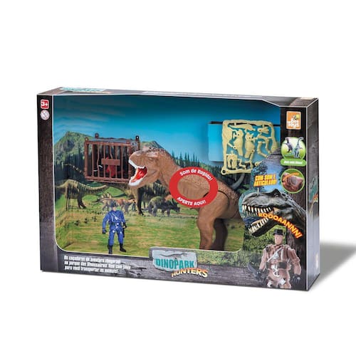 Conteúdo da Embalagem: 01 DinoPark Hunters com Bom Som 571 Bee Toys 01 Jaula 01 Boneco