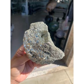Pirita Peruana com Formato de Dinossauro, pedra Extra ,mineral cúbico ou seja formação em cubo sobre outros em algomerados, ideal para coleção e esoterismo Pedra com bom brilho, cubos pequenos e brilhosos Conhecida também como "Ouro de Tolo"
