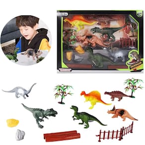 Este kit irá despertar o interesse do seu filho para o período pré histórico dos Dinossauros que teve início a milhões de anos atrás. Esse grupo de répteis gigantes viveram no planeta Terra durante a Era Mesozoica, que começou cerca de 252 milhões de anos atrás, sendo extintos a 65 milhões de anos, no final dessa era, eles são os maiores animais que já habitaram o planeta. Dinossauro Kit 14 Pecas Borracha Para Crianças Brinquedo