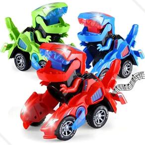 Características Transformação automática de carro para dinossauro Sons estrondosos ao se transformar Luzes led coloridas e música divertida Rodas universais que mudam de direção ao encontrar obstáculos Sistema anti-colisão Seguro e durável Brinquedo portátil e interativo, ideal para crianças
