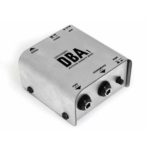 Direct Box Ativo Santo Ângelo Dba1Direct box ativo "dba1" diferente do modelo passivo o "dba1" utiliza um transistor para fazer o balanceamento do sinal, por este motivo é necessário alimentação externa 9v ou utilizar o phantom powerCor: prataMarca: Santo AngeloGarantia: 6 meses