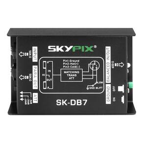 DESCRIÇÃO O Direct Box de 1 canal SK-DB7 da marca Skypix é um DI passivo que atua como balanceador de sinal, nivelando a impedância para a conexão direta de instrumentos em mesas de som. Sua tampa e caixa foram fabricados em aço carbono com pintura eletrostática na cor preto fosco. O Direct Box conta com uma entrada P10 input com impedância de 50K Ohms para instrumentos desbalanceados, uma saída P10 desbalanceada paralela com impedância de 50K Ohms, chave de atenuação de entrada selecionável 0 dB / -20dB / -40 dB , uma saída XLR output já balanceada para ligar na sua mesa de som e um botão ground para eliminar interferências e ruídos. MARCA Skypix MODELO SK-DB7 90 dias OBSERVAÇÃO Passivo ESPECIFICAÇÕES TÉCNICAS - Marca: Skypix - Modelo: SK-DB7 - Tipo: Direct Box Passivo - Cor: Preto Fosco - Canal: 1 - Material: Aço Carbono com pintura eletrostática - 01 Entrada P10 desbalanceada - 01 Saída P10 paralela desbalanceada - 01 Saída XLR balanceada - Chave Ground On/Off para aterramento - Chave de atenuação 0 dB / -20 dB / -40 dB - Impedância de entrada e saída desbalanceada: 50K Ohms - Impedância de entrada e saída balanceada: 600 Ohms