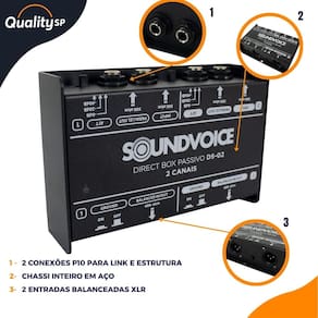 Apresentamos o Direct Box Passivo SOUNDVOICE DS-02, a solução perfeita para músicos e técnicos de som que buscam qualidade e desempenho superior. Este equipamento transforma sinais de alta impedância em baixa impedância, ideal para conectar instrumentos a sistemas de som profissionais.