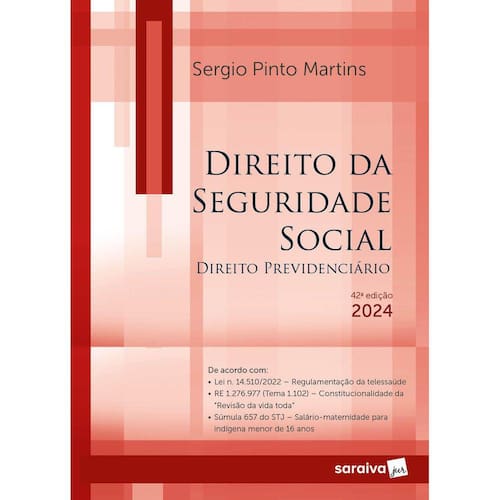 Em sua 41ª edição, esta obra mostra que teve fôlego para acompanhar as muitas alterações na e que se mantém em dia com tudo o que envolve essa importante disciplina. A nova edição permanece em formato didático e sistematizado para fácil consulta. Assim, são expostos temas como: introdução ao Direito da Seguridade Social, contendo seus princípios e regras gerais; custeio da Seguridade Social, mostrando as várias formas de custeio; Previdência Social, envolvendo os benefícios previdenciários; Assistência Social, de acordo com a Lei n. 8.742/93; e Saúde, conforme a Lei n. 8.080/90. Vale destacar que o autor inclui ao final de cada capítulo o item Verificação de Aprendizagem, com questões para a fixação da matéria. O livro está devidamente atualizado, com destaque para a Lei n. 14.510/2022, que regulamentou a telessaúde; o Recurso Extraordinário (RE) 1.276.977, com repercussão geral (Tema 1.102), em que o STF declarou a constitucionalidade da chamada Revisão da vida toda; e a Súmula 657 do STJ, que trata do direito de indígena menor de 16 anos ao salário-maternidade. O leitor encontrará conteúdo confiável e aporte seguro para as dúvidas mais comuns relativas aos assuntos sobre Direito Previdenciário. Data de fechamento da edição: 21-12-2023.