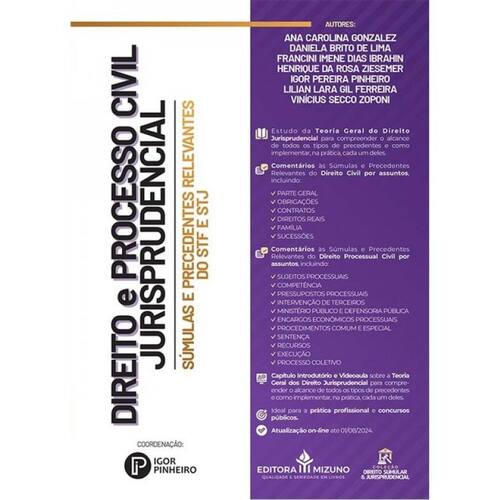 Há muito tempo (desde a Emenda Constitucional nº 45/2004 e, principalmente, após o advento do Novo Código de Processo Civil), o Direito Brasileiro deixou de ter a lei e as decisões abstratas do controle de constitucionalidade como os únicos instrumentos vinculantes para o Poder Judiciário e para a Administração Pública. Essa constatação decorre do disposto nos artigos 103-A, §3º, da Constituição Federal c/c artigo 988, §§1º e 5º do Código de Processo Civil, após modificações operadas pela Lei nº 13.256/2016. Tem-se, na atualidade, para além dos precedentes qualificados (súmulas vinculantes, teses de repercussão geral e recursos repetitivos) com relevantes efeitos processuais, coletâneas jurisprudenciais que ostentam muita importância, como é o caso da chamada “Jurisprudência em Teses do STJ”, as Jornadas do CJF e da Escola Judiciária Eleitoral do TSE. Ocorre que o chamado “Direito Jurisprudencial” ou “Direito dos Precedentes” possui fontes difusas, o que traz uma certa dificuldade para que o profissional ou estudante do Direito possa tenha acesso rápido e didático aos entendimentos sobre o tema específico que queira pesquisar. Diante dessa constatação, bem como pela inequívoca importância acadêmica e prática do assunto, resolvemos lançar a Coleção Direito Sumular e Jurisprudencial, em que separamos os precedentes relevantes dos Tribunais Superiores por disciplinas para que o leitor possa ter uma visão especializada, otimizando o tempo de estudo e encontrando as soluções para os problemas acadêmicos e práticos do dia a dia. O presente volume é um dos que compõem a coleção citada e servirá como um verdadeiro Manual de Jurisprudência sobre xxxx Como garantia de manutenção da qualidade e utilidade, a obra possui garantia de atualização on-line até 31/08/2024. Igor Pereira Pinheiro Coautor da obra e Coordenador Editorial do Grupo Mizuno