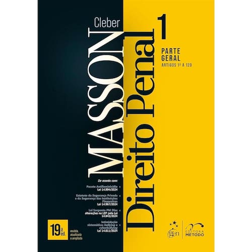 Este primeiro volume da coleção Direito Penal apresenta a análise completa dos Títulos I a VIII da Parte Geral do Código Penal (arts. 1º a 120) e está estruturado em três unidades principais: Teoria Geral do Direito Penal, Teoria Geral do Crime e Teoria Geral da Pena. O livro engloba temas como escolas penais e evolução doutrinária da disciplina; conceito e classificação do crime; erro de tipo; tentativa, desistência e arrependimento; concurso de pessoas; concurso de crimes; espécies de penas; ação penal; extinção da punibilidade; entre tantos outros. A Coleção Direito Penal abrange as mais diversas questões inerentes a essa disciplina, razão pela qual é indicada ao público universitário, a quem se prepara para provas e concursos públicos em geral e aos operadores do Direito Penal. Com a utilização de recursos didáticos, Cleber Masson alia a abordagem da doutrina clássica com as mais recentes ideias penais, surgidas tanto no Brasil como no Direito Comparado, e examina minuciosamente a jurisprudência do Supremo Tribunal Federal e do Superior Tribunal de Justiça. Todo concurso público, variando de acordo com seu perfil, esperados candidatos um pensamento em conformidade com a instituição cujo ingresso se pretende, razão pela qual o autor buscou destacar sempre a doutrina e a jurisprudência mais aceitas, indicando a melhor corrente a ser adotada em cada certame. ? Marca: EDITORA METODO