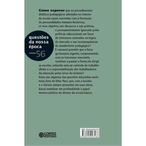 Como esperar que os procedimentos didático-pedagógicos adotados no interior da escola sejam coerentes com a formação de personalidades humano-históricas, se esse objetivo, nos discursos e nas práticas, é permanentemente ignorado pelas políticas educacionais em favor de interesses centrados na lógica do mercado e nas inconsequências do amadorismo pedagógico? É razoável permitir que a fúria gestionária vigente, comprometida com os interesses mercantis, continue a pautar a forma de dirigir as escolas, reduzida esta ao controle do trabalho alheio e à responsabilização dos trabalhadores da educação pelos erros do sistema? Estas são algumas das questões discutidas neste novo livro de Vitor Paro, que, com a lucidez e a clareza sempre presentes em suas obras, busca examinar em profundidade o papel técnico-político do diretor da escola básica. Marca: CORTEZ*