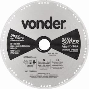 Disco de corte diamantado, contínuo, para metais, metal super, 180 mm, VONDER