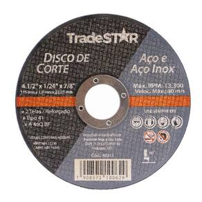 As especificações do Disco de Corte Metal 4.1/2 115x1,0 mm incluem: