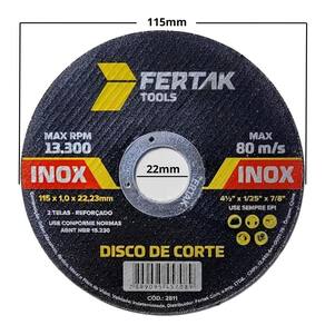 Disco Corte Metal Aço Inox Ferro Esmerilhadeira 115x1x22mm Fertak