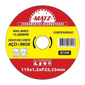 Disco Corte Rápido Aço Inox 22,23Mm X 115Mm Matz