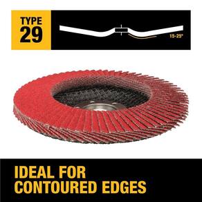 Disco de aba de cerâmica DEWALT DWA8281 60G T29 XP, 4-1/2" x 7/8" - Tecido de cerâmica XP Premium para longa vida útil e rápida remoção de material - 50% mais rápido que os discos de aba padrão - Oferece vida útil 2,5 vezes maior do que o disco de aba padrão - Permite a capacidade de triturar materiais planos com o acabamento de um disco de fibra