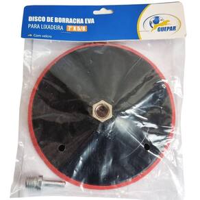 Disco de Borracha 180mm x 5/8 Suporte para Lixa 7 Pol. Base Aderente GueparSuporte para lixadeiras, esmerilhadeira e politriz de 7 Polegadas 180mm . Com encaixe rosca 5/8 e base aderente. Acompanha adaptador para furadeira- Marca: Guepar- Referência: 861-40003- Diâmetro: 180 mm- Rosca: 5/8- Acompanha Adaptador para furadeira- Velocidade máxima: 12.500 rpm- Base aderente- Indicado para lixar madeira, superfícies pintadas, metal, etc.- Peso bruto: 180 gramas- Garantia: 90 dias