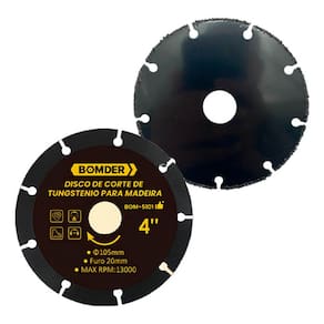 O Disco de Corte para Madeira é projetado para garantir cortes rápidos e precisos, sendo feito em Tungstênio, material conhecido pela alta resistência e durabilidade. Com um diâmetro de 105mm e encaixe central de 20mm, é compatível com diversas serras e equipamentos de corte. Ideal para trabalhos que exigem eficiência, o disco opera com até 13.000 rotações por minuto, proporcionando desempenho superior em cortes de madeira, com excelente acabamento.