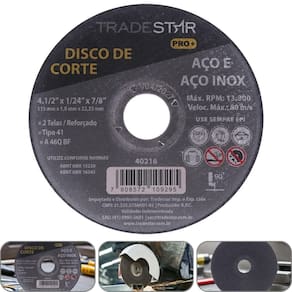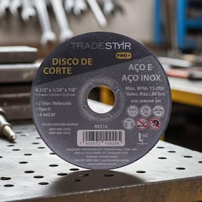 Outro diferencial importante do Disco de Corte Tradestar Pro é a sua estrutura reforçada com 2 telas de fibra de vidro, que aumentam a resistência do disco durante o uso e proporcionam maior segurança ao operador. Essa característica é essencial em cortes de alta velocidade, evitando que o disco se rompa facilmente sob pressão. Graças à sua composição abrasiva de alta qualidade, o Disco de Corte Tradestar Pro 115 x 1 mm garante desempenho consistente, longa vida útil e excelente custo-benefício. É uma solução prática e confiável para profissionais da construção civil, serralherias, metalúrgicas, oficinas mecânicas e até mesmo para uso em pequenos reparos e manutenções. Além disso, sua espessura de apenas 1 mm permite cortes mais finos, rápidos e com menor aquecimento da peça, preservando as características do material trabalhado. Dessa forma, o disco contribui para um acabamento mais limpo, reduzindo a necessidade de processos de lixamento e polimento após o corte.