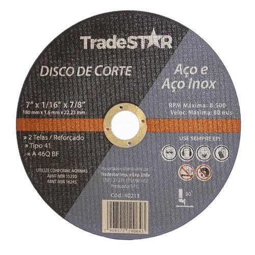 Tamanho: 7 polegadas 180 mm Espessura: 1,6 mm Diâmetro do furo: 22,2 mm Máxima rotação: 8.500 rpm Material: abrasivo de alta qualidade e resina fenólica Indicado para corte em metais ferrosos e não ferrosos, aço inoxidável e materiais de alta dureza Excelente vida útil e capacidade de corte rápido e preciso Atende às normas de segurança da abnt associação brasileira de normas técnicas .