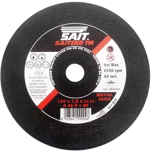 Disco de Corte 230X2,0X22,2 A46P - Saiteko - Disco de corte inox ideal para aplicação em aço carbono, aços ligados e metais não ferrosos. Uso universal e proporciona corte rápido. Discos sem compostos de ferro e enxofre. - Abrasivo: Óxido de Alumínio - Medida: 7 x 1,80 x 7/8 Pol. - Diâmetro: 7 - Furo: 7/8 - Espessura: 1,8mm Características Gerais do Produto: Tamanho: 10X10X10cm 0,1Kg : 3 meses Marca: Não Informado