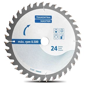 Disco De Corte 7.1/4" 36 Dentes Tramontina Para Serra Circular Tramontina Disco de Corte 7.1/4 36 Dentes Tramontina para Serra Circular Tramontina - Para quem deseja um bom rendimento e performance, o Disco de Corte 7.1/4 polegadas 36 Dentes Tramontina para Serra Circular é a escolha certa. O produto é desenvolvido para proporcionar um corte suave e preciso e é ideal para materiais como madeira, compensado e MDF, além de outros. Todas as suas características são pensadas visando a eficácia da operação. Otimize seu tempo com produtos de qualidade.OrientaçõesLâmina em aço carbono temperada; Dentes com ponta de metal duro fixados por brasagem; Dentes afiados para cortes suaves; Ângulo de ataque dos dentes agressivo para cortes rápidos; Acompanha anel de redução (20-16mm); 24 dentes; Velocidade máxima detrabalho 80m/s - 8500 rpm; Blister. Utilizado juntamente com serras circulares nos trabalhos de corte em madeiras, compensados, MDF, etc. Não utilizar em metais. Proporciona um excelente rendimento nas operações de corte; Todas as ferramentas são produzidas e testadas conforme normas específicas.ObservaçõesUse óculos, luvas de segurança, protetor auricular, máscara de proteção contra poeira e vestimentas adequadas de acordo com a tarefa a ser executada. Sempre manuseie e armazene os discos com cuidado. Antes da utilização, faça uma avaliação visual certificando-se que não haja danos ou trincas nos discos. Certifique-se que a velocidade do equipamento não exceda a velocidade máxima marcada nos discos. Utilize flanges de tamanho igual e modelo apropriado para cada tipo de disco. Sempre utilize o protetor de segurança do equipamento. Sempre que utilizar discos novos, antes da operação trabalhe com a máxima rotação, sem carga, por um minuto em área protegida. Tal procedimento tem o objetivo de verificar a integridade dos discos. Utilize apoio para os braços, se necessário. O ambiente de trabalho deve ser ventilado para evitar doenças respiratórias. Não utilize discos que foram expostos a umidade e temperaturas extremas. Não utilize discos que sofreram quedas ou que apresentem danos. No momento da montagem, não force os discos contra o equipamento ou altere o tamanho do furo central. Não aperte as flanges excessivamente. Não fique diretamente em frente aos discos durante a operação. Não utilize os discos para outros fins a não ser para os que foram projetados. Armazene em local limpo e seco.Características GeraisEAN137891114105001DUN1417891114105008NCM8202.31.00Peso Líquido0,3080 kg.Peso Bruto0,3080 kg.Metragem0,000298 m.Dimensões Embalagem (Compr. X Larg. X Alt.)265x 225x 5 mm.Dimensões Produto (Compr. X Larg. X Alt.)184x 184x 2 mm.Dimensão Extra A2,0 mm.Dimensão Extra B184,0 mm.Dimensão Extra C20,0 mm. Características Gerais do Produto: Garantia: - 1 Ano