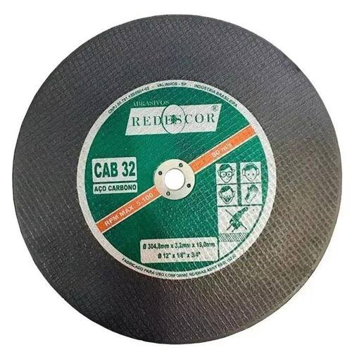 Disco de Corte Para Ferro CAB 32 304.8mm x 3mm x 16.0mm - 80m/s 12 Polegadas CARACTERISTICAS Utilizado juntamente com esmerilhadeiras nos trabalhos de corte em aços e metais ferrosos em geral. Proporciona um excelente rendimento nas operações de corte, mais grosso que os discos comum e mais reforçado com 3.0mm de espessura Corpo reforçado com malha de fibra de vidro. Anel interno de aço especial.