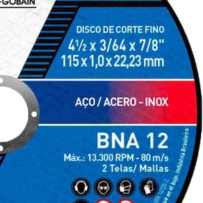 Disco de Corte BNA 12 Azul New 115x1,0x22,23mm - 66252846557 - NORTON
