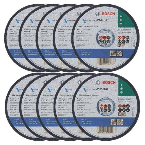 O Kit Disco De Corte Deep Cut 4.1/2 X 1.0 X 7/8 - 10 Unidades 2608619383 - Bosch, possuem ótimo desempenho em cortes em metal. São produzidos com grãos abrasivos de óxido de alumínio de alta qualidade que dão rendimento e velocidade em suas aplicações, além das telas de fibra de vidro feitas com precisão e simetria que trazem alta estabilidade para o disco. São fabricados sob alto padrão de qualidade em conformidade com as normas internacionais EN 12413 trazendo máxima segurança durante sua aplicação. São indicados para corte de metais ferrosos e não ferrosos e ferro fundido e utilização em esmerilhadeiras manuais.