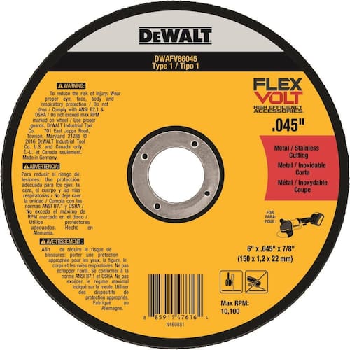 DEWALT DWAFV86045 FLEXVOLT T1 Roda de corte, 15,2 cm x 0,114 x 7/20.3 cm - Grãos de cerâmica de alto desempenho que permanecem afiados para cortes rápidos e eficientes - Concentração de grãos de alta densidade para ação rápida e baixo acúmulo de calor - Para uso em ferramentas sem fio e com fio - Os acessórios de alta eficiência Dewalt Flex são projetados para maximizar o tempo de execução