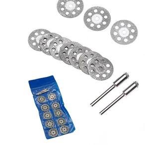 - Jogo com 10 discos diamantados 22mm e 2 hastes 3mm