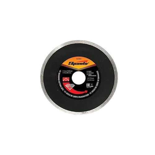 Disco De Corte Diamantado Contínuo 110 X 20 Mm Corte A Seco Disco de Corte Diamantado Contínuo 110 X 20 MM Corte a Seco Com design turbo fino, permite acabamento fino e preciso com boa velocidade de corte com efeito de resfriamento evitando aquecimento e danos no disco. Performance adequada para os principais revestimentos duro do mercado, como porcelanatos, placas de mármore e granito, permitindo excelente vida útil também em aplicações secas. O corte Fino que proporciona menor vibração e mais estabilidade do que a concorrência devido à espessura do corpo do disco 1,2 mm que garante menores deformações ao esquentar. Facilidade de corte Menor risco de quebra do disco Acabamento com bordas limpas e sem rebarbas Aplicação: Porcelanatos, Azulejos cerâmicos, cerâmicas e ladrilhos, mármore e granitos. Especificações técnicas: Espessura do disco: 1. 2mm Diâmetro do disco: 105mm ? 4. 1/2' Diâmetro do furo: 20mm Max. RPM: 14. 600 Qualidade: Standard Imagens meramente ilustrativas Todas as informações divulgadas são de responsabilidade do fabricante/fornecedor