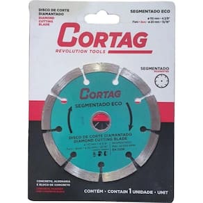 Disco De Corte Diamantado Cortag 110mm Segmentado Seco Referência: 61699Tipo: SegmentadoMedidas: 110mm ( 20mm (13/16)Acompanha Bucha de Redução: SimRPM: 14000 A imagem do produto é ilustrativa e pode variar de tonalidade e cor de acordo com a configuração de cada objetos que compõem a foto ambientada não acompanham o meramente ilustrativas.