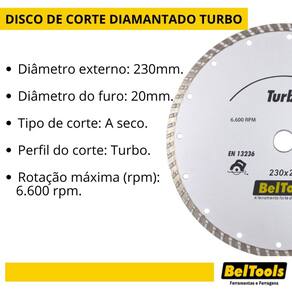 Disco de Corte Diamantado Turbo 230x20 Beltools