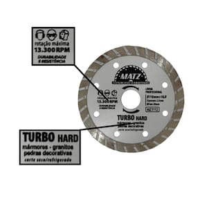 Disco de corte diamantado turbo, ideal para cortes secos e refrigerados em mármores, granitos e pedras decorativas. Seu design turbo proporciona cortes rápidos e precisos, com alta durabilidade e resistência ao desgaste. Perfeito para profissionais que buscam eficiência e acabamento de qualidade em materiais duros e abrasivos.