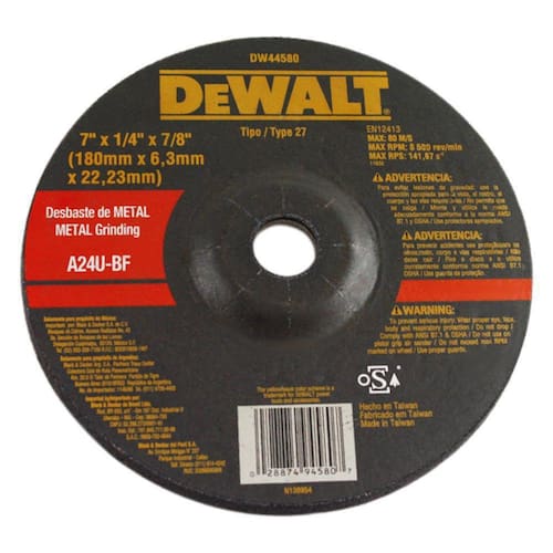 Disco de Corte Fino para Metal Dewalt DW44580 Características: Utilizado em esmerilhadeira para cortes em aço e metais. Medidas: 7 x 1/4 x 7/8 polegadas Marca: Dewalt Imagem meramente ilustrativa. Ean: 028874945807