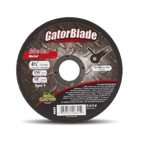 Disco de corte metálico Gator 9621 Tipo 1, óxido de aluminio. - Material: Óxido de aluminio - Diámetro: 11,43 cm - Tamaño del núcleo: 2,22 cm - Espesor: 0,16 cm - Estilo: Tipo 1