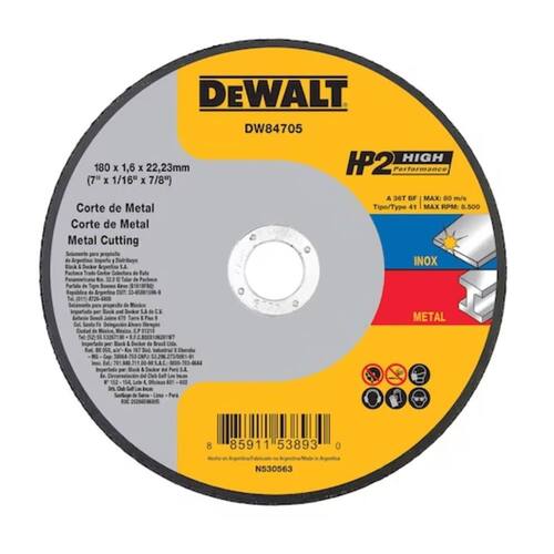 O Disco de Corte Inox HP2 7x1,6mmx7/8" DW84705, da linha HP2 da DeWalt, conta com grão de óxido de alumínio premium, garantindo maior durabilidade e velocidade no corte. Com alta concentração de grãos, oferece uma ação de corte rápida, livre de ferro, enxofre e cloro, evitando contaminações.