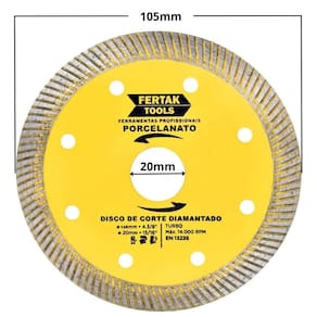 Cortes precisos e sem rebarbas no porcelanato O Disco de Corte para Porcelanato 105x20mm foi projetado para oferecer máxima precisão e acabamento impecável. Ideal para cortes retos e curvos, ele é a escolha perfeita para quem busca qualidade e eficiência em reformas, construções e projetos de revestimento.