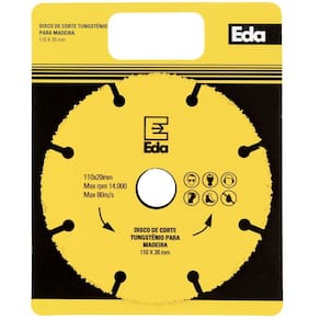- Marca: Eda Profissional - Referência: 0QF - Diâmetro: 110mm - Furo: 20mm - Velocidade máxima: 14.000rpm - Para cortar madeira, madeira com pregos, madeira com resto de alvenaria, materiais sintéticos, drywall, plástico, PVC, gesso e tubos de cobre - Corte de madeira com ou sem pregos com máxima segurança - Corte de diversos materiais com apenas um disco - Com a borda de Metal Duro fabricado com tecnologia de fusão a laser proporciona um rendimento elevado e longa vida útil do disco - O design com corpo fino e os canais de expansão garantem boa velocidade de corte e evitam a deformação da lâmina - Garantia: 90 dias contra defeitos de fabricação