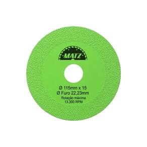 Para uso em: Vidro e Cristal Diâmetro do furo: 22,23mm Diâmetro do disco: 115mm x 15 Rotação máxima: 13.300 Cor: Verde Resistente e durável Marca: Não Informado Ean: 7896595633500