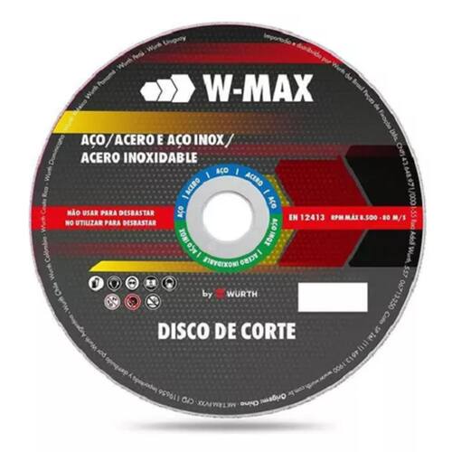 Disco de Corte W-max Wurth foi desenvolvido para corte de aço inox e aço carbono, proporciona cortes rápidos, precisos e com excelentes resultados em chapas, perfis e material maciço.