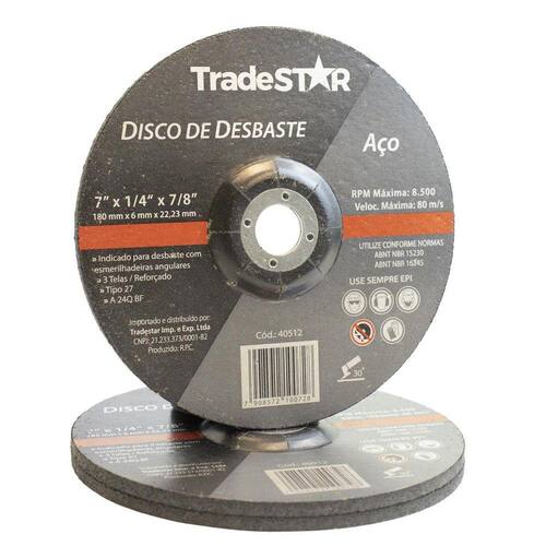 Disco de Desbaste Metal 7 Pol 180 X 6 Mm Com 5 Un Tradestar
