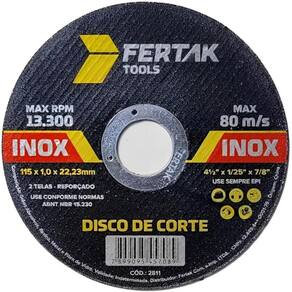 Disco Corte Metal Aço Inox Ferro Esmerilhadeira 115x1x22mm Fertak O Disco de Corte para Metal Aço Inox Ferro 115x1x22mm é robusto e confiável, projetado para cortes precisos em diversos materiais, minimizando a geração de calor e prolongando sua vida útil. É adequado para uma ampla gama de projetos, desde leves até industriais.