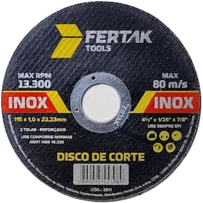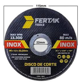 Disco Corte Metal Aço Inox Ferro Esmerilhadeira 115x1x22mm Fertak O Disco de Corte para Metal Aço Inox Ferro 115x1x22mm é robusto e confiável, projetado para cortes precisos em diversos materiais, minimizando a geração de calor e prolongando sua vida útil. É adequado para uma ampla gama de projetos, desde leves até industriais.