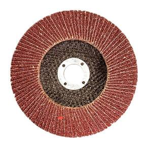 Disco de desbaste tipo flap sextavado e feito de lixas rectangulares na base de tecido que sao situadas como um leque com fibra de vidro como material de base.