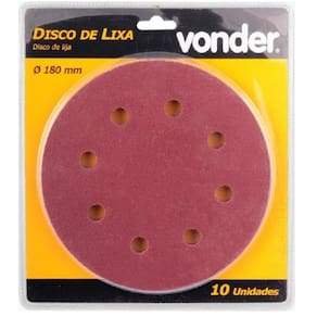 Disco ideal para lixar paredes de alvenaria, gesso e massa corrida. Possui sistema fixa fácil e 8 furos para aspiração da poeira. Indicado para lixadeira de parede LPV 750. - Diâmetro do disco: 7" - 180mm - Grão: G 150 - Tipo de grão abrasivo: Óxido de alumínio - Acompanha: 10 unidades - : 03 meses - Marca: VONDER -furos para aspiração da poeira 8 -sistema fixa fácil Dimensões da embalagem: 18x22x3cm Peso: 100g Marca: Não Informado