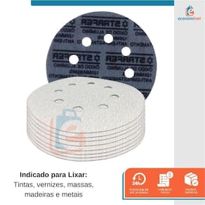 O disco de lixa é ideal para se usar com discos de borracha, furadeira e esmerilhadeira. Produzido em lixa abrasiva com pluma é indicado para lixar massa, tintas, vernizes, metais e madeira. Características técnicas: material: resina, óxido de alumínio, papel e pluma medidas: 125mm 5 quantidade de furos: 8 limite máxima: 12220rpm, 80m/s grão: 60 marca: starfer ref. : 4003462