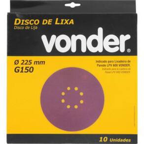 - Diâmetro do disco de lixa: 225mm - Grão: G 150 - Tipo de grão abrasivo: Óxido de alumínio - 1 Pacote com 10 discos de lixa Marca: Não Informado Ean: 7893946480974