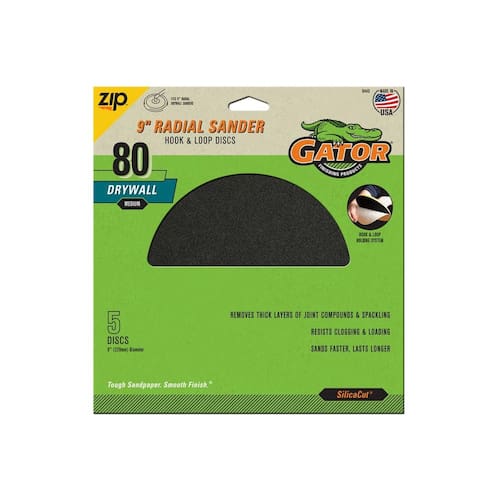 Disco de lixamento de drywall com gancho e laço de carboneto de silício Gator 9", grão 80, pacote com 5 unidades.