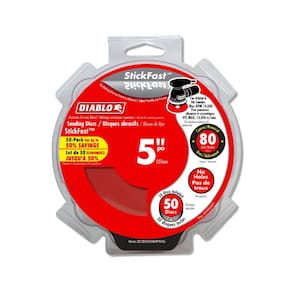 Diablo Disco de lixamento ROS de lixamento com suporte StickFast - remoção rápida de material, vida extralonga - 12,7 cm de diâmetro, grão 80, grosso, pacote com 50 - DCD050080P50G