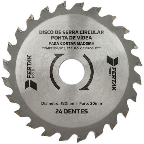 Diâmetro do Disco: 180mm Quantidade de Dentes: 24 dentes Material: Aço de alta resistência e dentes de metal duro vídea